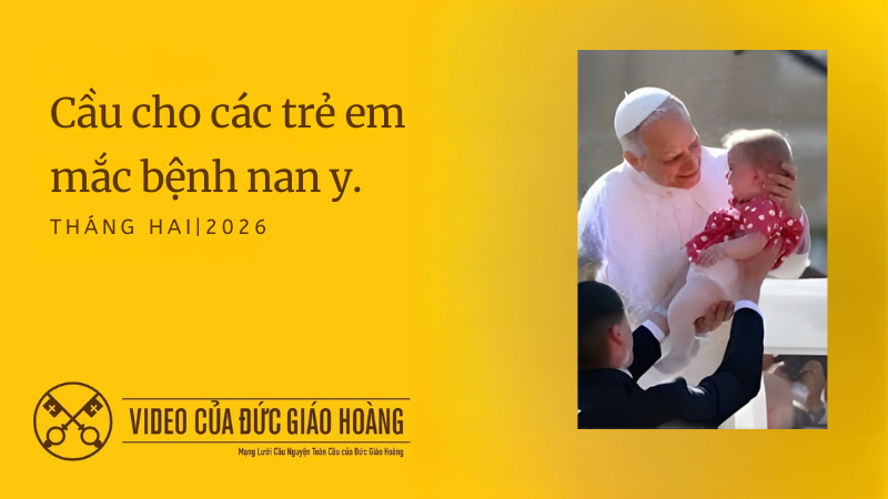 Có những căn bệnh và tình trạng nan y vô cùng nghiêm trọng, không trực tiếp gây tử vong nhưng kéo dài dai dẳng theo năm tháng. Điều ấy đặc biệt đau đớn đối với những người đang ở khởi đầu của sự sống – là các em nhỏ – và cho cả gia đình các em. Trong ý cầu nguyện tháng Hai này, Đức Thánh Cha Lêô mời gọi chúng ta cầu nguyện để các trẻ em đang phải chịu đựng bệnh nan y và gia đình các em được đón nhận sự chăm sóc y tế và sự nâng đỡ cần thiết, luôn giữ vững nghị lực và niềm hy vọng.
