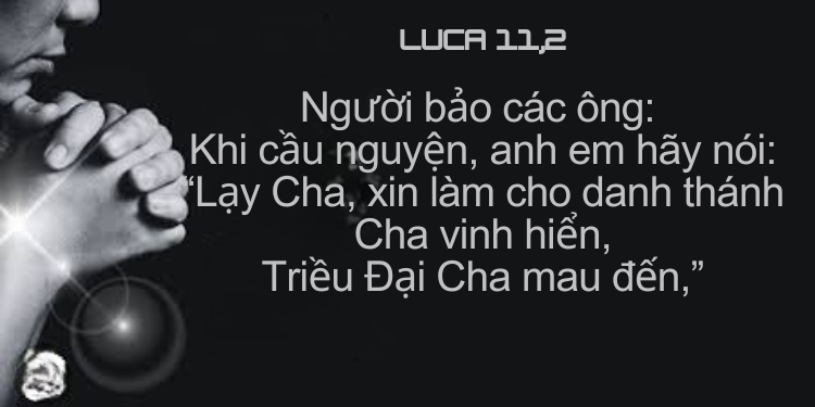 1 Một hôm, Đức Giê-su cầu nguyện ở nơi kia. Người cầu nguyện xong, thì có một người trong nhóm môn đệ nói với Người: “Thưa Thầy, xin dạy chúng con cầu nguyện, cũng như ông Gio-an đã dạy môn đệ của ông.” 2 Người bảo các ông: “Khi cầu nguyện, anh em hãy nói: