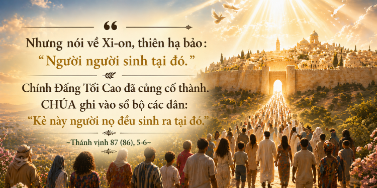 Câu Thánh vịnh chúng ta cầu nguyện hôm nay, Thiên Chúa muốn nói với chúng ta Thiên Chúa không chỉ là Chúa của một dân tộc, mà là Cha của muôn dân. Trong Ngài, mọi người đều được sinh ra, được thuộc về, và được yêu thương, mọi dân tộc sẽ được kể như thuộc về Xi-on, về dân Thiên Chúa.