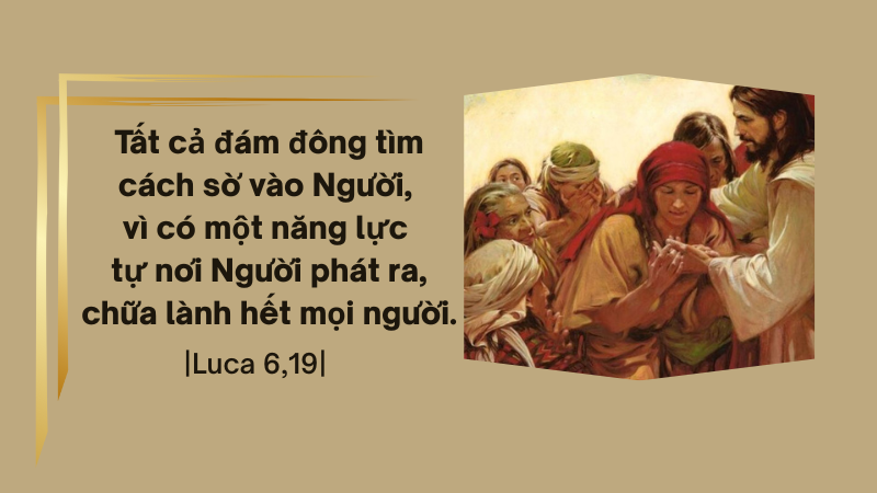 17 Đức Giê-su đi xuống cùng với các ông, Người dừng lại ở một chỗ đất bằng. Tại đó, đông đảo môn đệ của Người, và đoàn lũ dân chúng từ khắp miền Giu-đê, Giê-ru-sa-lem cũng như từ miền duyên hải Tia và Xi-đôn 18 đến để nghe Người giảng và để được chữa lành bệnh tật. Những kẻ bị các thần ô uế quấy nhiễu cũng được chữa lành. 19 Tất cả đám đông tìm cách sờ vào Người, vì có một năng lực tự nơi Người phát ra, chữa lành hết mọi người.