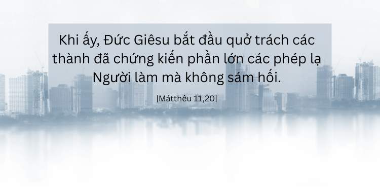 Đức Giêsu đã đi rao giảng và làm rất nhiều phép lạ để kêu gọi mọi người nhận ra sự hiện diện và tình thương của Thiên Chúa. Tuy nhiên, nhiều người vẫn cứng lòng và chai lì trong tội lỗi nên đã không sám hối ăn năn. Sở dĩ người ta không sám hối ăn năn vì không kính sợ Thiên Chúa và không nghĩ đến sự sống đời sau. Do đó, những lời rao giảng và những phép lạ Đức Giêsu làm không chạm được vào người ta, vì lòng người ta đã đóng lại để chìm đắm và che đậy đam mê tội lỗi của mình. Thiên Chúa luôn cảm thông cho sự yếu đuối của con người nên Ngài luôn sẵn sàng tha thứ, nhưng ơn tha thứ chỉ sinh hoa kết trái nơi những ai biết ăn năn thật lòng mà thôi.