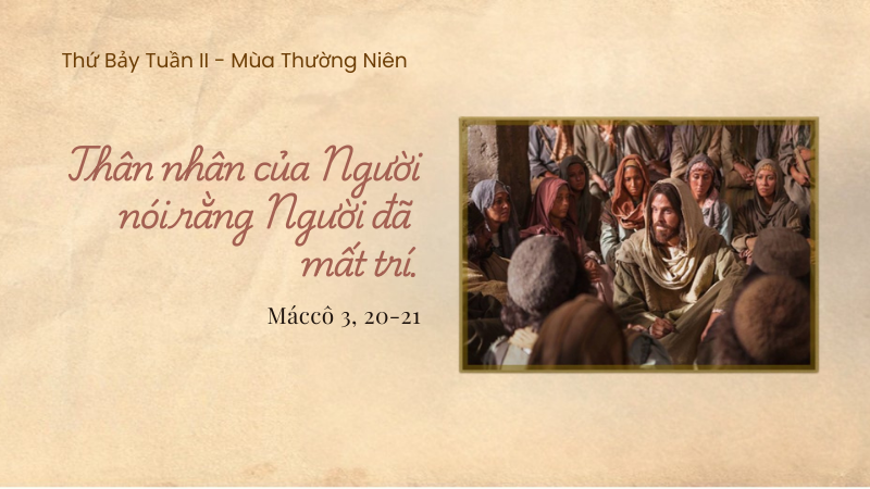 20 Khi ấy, Đức Giê-su cùng với các môn đệ trở về nhà, và đám đông lại kéo đến, nên Người và các môn đệ không sao ăn uống được. 21 Thân nhân của Người hay tin ấy, liền đi bắt Người, vì họ nói rằng Người đã mất trí.