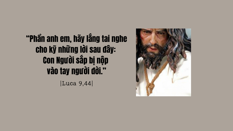 Mặc dù dân chúng đang ngạc nhiên về những việc Đức Giêsu làm, nhưng Ngài không bao giờ quên sứ mạng của Ngài là hiến dâng mạng sống. Vì thế, Ngài không muốn các môn đệ dừng lại ở những lời ca ngợi của dân chúng, nhưng muốn các ông chuẩn bị tinh thần để đón nhận biến cố Ngài sẽ hiến dâng mạng sống trên thập giá. Một điều thật phũ phàng, Đức Giêsu cứu độ con người bằng cách trao nộp mình vào tay một số người. Dẫu biết trước như vậy, Thiên Chúa vẫn thực hiện chương trình cứu độ con người.