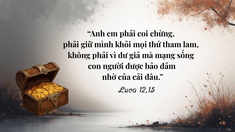 Chúa Giêsu được gõ cửa xin trợ giúp của một người bị đối xử bất công trong việc chia gia tài. Nhưng lời phúc đáp lại là câu chất vấn ngược xem ra thiếu thiện chí của Chúa Giêsu: “Này anh, ai đã đặt tôi làm người xử kiện hay người chia gia tài cho các anh?” (Lc 12,14) Chúa Giêsu khước từ? Không. Hãy nghe kỹ, suy nghĩ kỹ lời cảnh báo lời cảnh báo sau đây: “Anh em phải coi chừng, phải giữ mình khỏi mọi thứ tham lam, không phải vì dư giả mà mạng sống con người được bảo đảm nhờ của cải đâu.” (Lc 12,15).