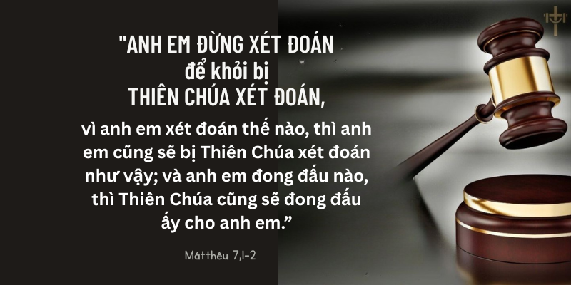 Đức Giêsu khuyên dạy các môn đệ đừng phán xét ai hết. Có ba lý do sau đây khiến con người không nên phán xét lẫn nhau: (1) Con người chỉ nhìn thấy bên ngoài nên không phán xét chính xác được; (2) Mọi người đều là tội nhân nên chẳng ai hơn ai mà phán xét; (3) Thiên Chúa là Đấng duy nhất có quyền phán xét nên khi con người phán xét lẫn nhau là cướp quyền của Thiên Chúa.