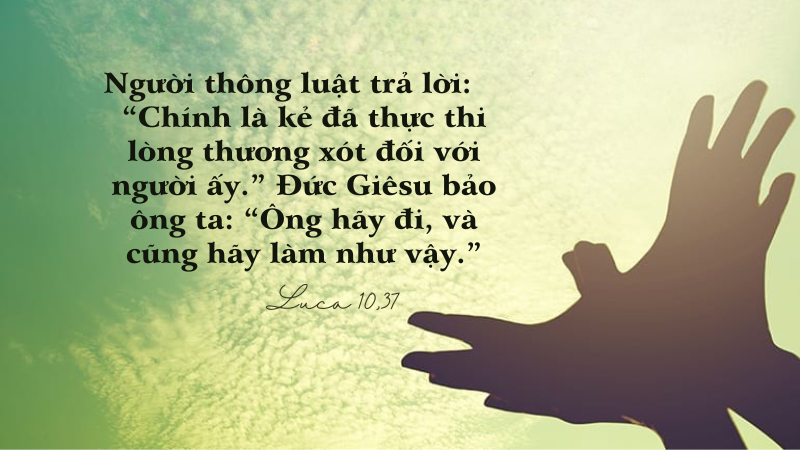 Nhà thông luật đã đặt một câu hỏi rất thực tế: “Tôi phải làm gì để thừa hưởng sự sống đời đời?” Mặc dù mục đích ông hỏi là để thử Đức Giêsu nhưng câu hỏi của ông đặt ra lại là mối bận tâm của nhiều người. Người ta nghe biết sẽ có sự sống đời đời nhưng không biết cách nào để đạt được sự sống đó. Cho nên qua câu hỏi của nhà thông luật, Đức Giêsu giải thích và hướng dẫn người ta cách đạt đến sự sống đời đời. Trước hết, sự sống đời đời dựa trên việc thực hiện giới răn yêu mến Chúa và tha nhân. Kế đến, yêu mến Chúa và tha nhân không nói bằng miệng nhưng cần thể hiện bằng hành động yêu thương như người Samari nhân hậu. Thấy người ta khổ cần giúp là giúp, không tính toán thiệt hơn, cũng không quan tâm đền đáp.