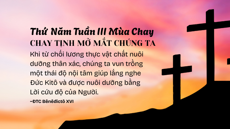 Thứ Năm Tuần Thứ Ba Mùa Chay CHAY TỊNH MỞ MẮT CHÚNG TA