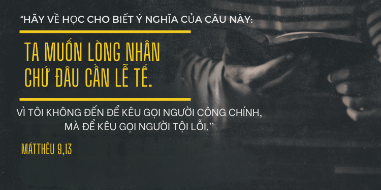 10 Khi Đức Giê-su đang dùng bữa tại nhà ông ấy, có nhiều người thu thuế và người tội lỗi kéo đến, cùng ăn với Người và các môn đệ. 11 Thấy vậy, những người Pha-ri-sêu nói với các môn đệ Người rằng: “Tại sao Thầy các anh lại ăn uống với bọn thu thuế và quân tội lỗi?” 12 Nghe thấy thế, Đức Giê-su nói: “Người khoẻ mạnh không cần thầy thuốc, người đau ốm mới cần. 13 Hãy về học cho biết ý nghĩa của câu này: Ta muốn lòng nhân chứ đâu cần lễ tế. Vì tôi không đến để kêu gọi người công chính, mà để kêu gọi người tội lỗi.”