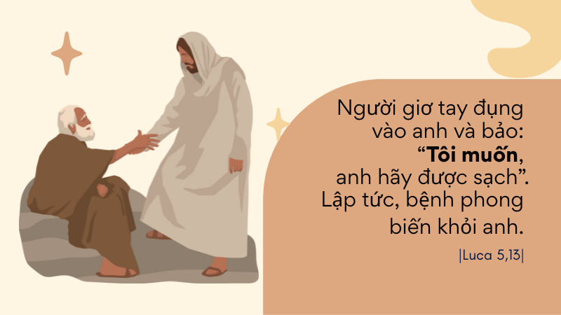 Thế nhưng, nơi Đức Giêsu không hề có một chút do dự. Người giơ tay chạm đến anh và nói: “Tôi muốn. Anh hãy được sạch.” Đức Giêsu muốn chạm đến những con người bị xem là không thể chạm tới. Trước đó không lâu, trong hội đường Na-da-rét, Người đã công bố rằng mình đến để loan báo năm hồng ân của Chúa, cách riêng cho người nghèo và kẻ bị giam cầm – như người phong cùi đang đứng trước mặt Người hôm nay để khẩn cầu lòng thương xót.