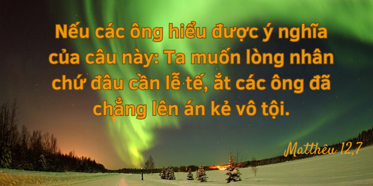 Thật sự, Lề luật không xấu vì nó giúp mọi người biết điều gì được làm và điều gì cần phải tránh. Tuy nhiên, chúng ta thường dùng luật để xét đoán người khác, nhưng không bao giờ xét mình. Từ đó làm cho Lề luật trở thành phương tiện để chúng ta công kích và xét đoán lẫn nhau. Chúng ta hãy luôn ghi nhớ câu nói của Đức Giêsu hôm nay: “Ta muốn lòng nhân từ chứ không phải lễ tế” (Mt 12,7) để biết cách cư xử trước những thiếu sót của người khác. Mỗi người hãy dùng đức ái để hiểu và giải quyết mọi vấn đề của bản thân cũng như người khác. Luật yêu thương trổi vượt trên mọi Lề luật.