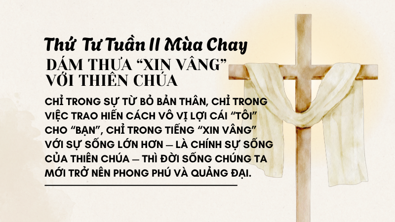 Anh chị em thân mến, có lẽ việc chấp nhận điều này như một viễn tượng nền tảng và cao cả của đời sống thì tương đối dễ. Nhưng trong thực hành, vấn đề không chỉ là nhìn nhận một nguyên lý, mà là sống theo chân lý chứa đựng trong nguyên lý ấy — chân lý của thập giá và phục sinh. Vì thế, một quyết định lớn duy nhất vẫn chưa đủ. Quyết định ấy chắc chắn là quan trọng, là thiết yếu: phải dám thực hiện quyết định căn bản ấy một lần trong đời, phải dám thưa tiếng “xin vâng” lớn lao mà Chúa đòi hỏi nơi chúng ta vào một thời điểm nào đó của cuộc đời. Nhưng tiếng “xin vâng” lớn lao của khoảnh khắc quyết định ấy — tiếng “xin vâng” với chân lý mà Chúa đặt trước mặt chúng ta — phải được chinh phục lại mỗi ngày, trong những hoàn cảnh cụ thể của đời sống thường nhật. Ở đó, chúng ta phải từ bỏ cái “tôi” của mình hết lần này đến lần khác, đặt mình vào sự sẵn sàng phục vụ Chúa, dù trong thẳm sâu, chúng ta vẫn muốn bám víu lấy cái “tôi” ấy.